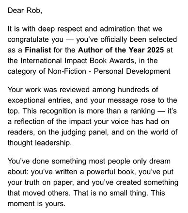 Rob's book is deeply inspiring for anyone who is brave enough to read it. Your old lens that you perceived the world thru will no longer be relevant. This is not a self help book but it is one of the best self help books I have come across.